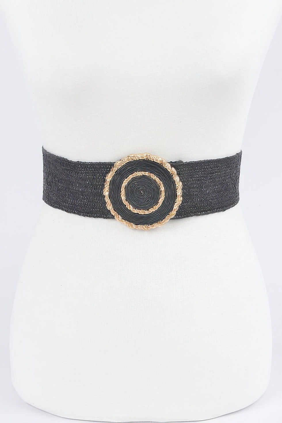 Faux Straw Two Buckle Elastic Belt